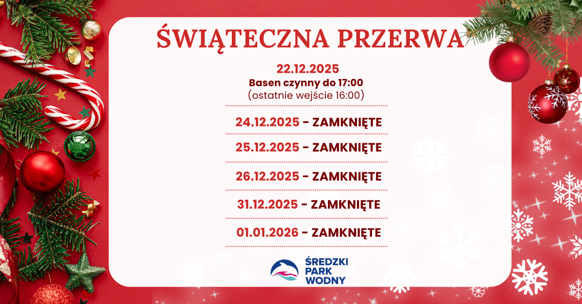 Grudzień to czas, w którym robi się nie tylko świątecznie, ale i… wyjątkowo aktywnie! Już 7 grudnia (niedziela) zapraszamy wszystkie rodziny, małych sportowców, miłośników zabawy i amatorów zimowych aktywności do Średzkiego Parku Wodnego, gdzie przygotowaliśmy prawdziwe mikołajkowe święto pełne emocji i niezapomnianych wrażeń. 💦 Wodne atrakcje dla małych i dużych Od 14:00 do 21:45 na […]