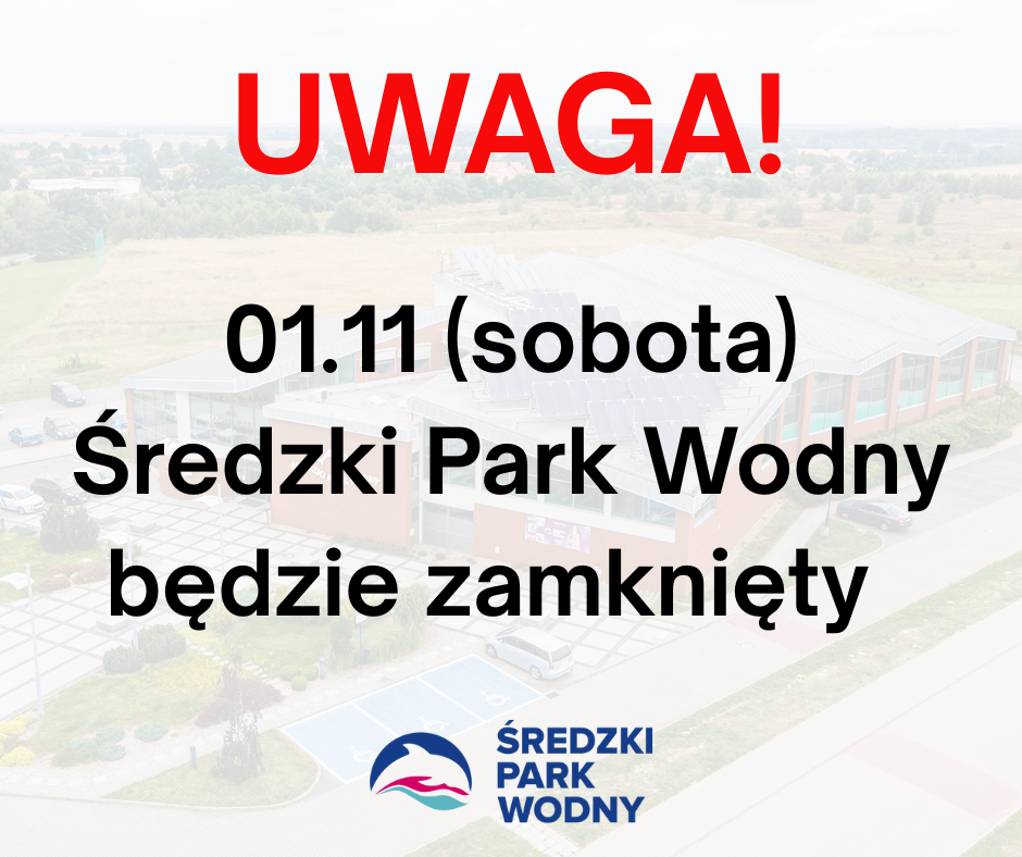 Drodzy Goście, uprzejmie informujemy, że w dniu 1 listopada (sobota) Średzki Park Wodny będzie nieczynny. Zapraszamy ponownie już 2 listopada – zachęcamy do aktywnego spędzania niedzieli w naszej strefie basenowej i saunowej!