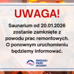 W dniach 2-15 lutego w strefie szatni i pryszniców będą prowadzone prace konserwacyjne (wymiana fug i silikonów).